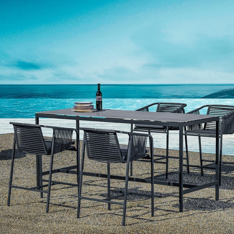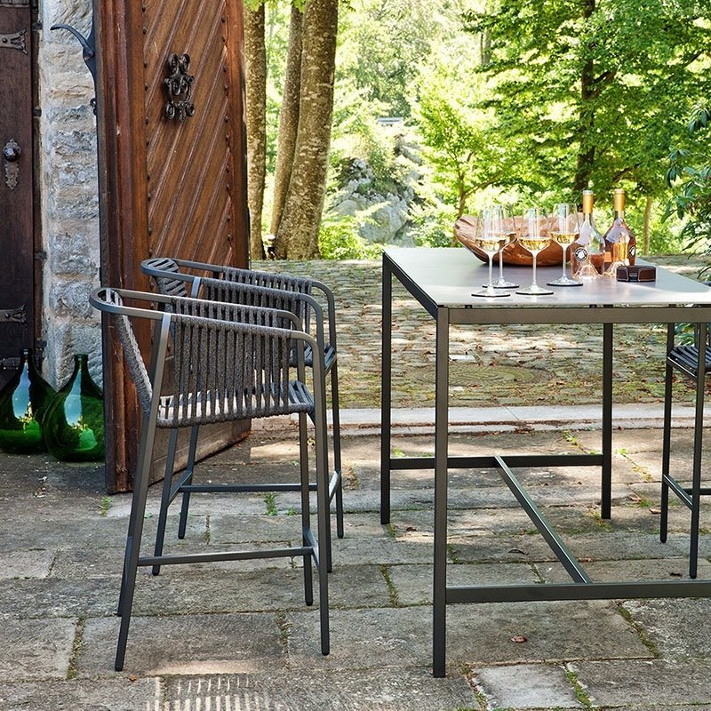 Die Bespannung besteht aus fm-rope in der Farbe granite, das 11 mm breit ist. Dieses Material ist nicht nur langlebig, sondern auch äußerst komfortabel, was den Barstuhl zu einer idealen Wahl für lange Abende im Freien macht.